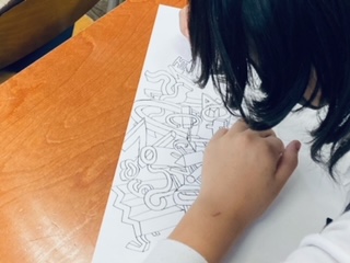 線描アートを題材にして、立体を重ねて、奥行きを表現しています。