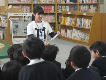 平野区の学力への取り組みとして、小学校に学力サポート員を派遣する事業があり、本校には、昨年より学生さんに来ていただいております。そして、今日からもう一名のサポート員が派遣されました。大学の「よみきかせコンクール」で優勝した経歴をお持ちの方で、火曜日にクラスの学習補助や図書室での読み聞かせを担当していただきます。