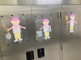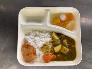 給食室も、コロナに負けず楽しくいただけるようにレイアウトをしてくれています。今日はカツカレーで、子どもたちは美味しくいただきました。