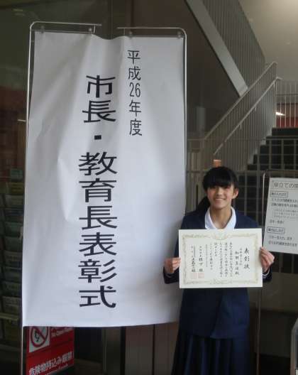 大阪市の教育委員から、直接賞状や盾を手わたされました。
