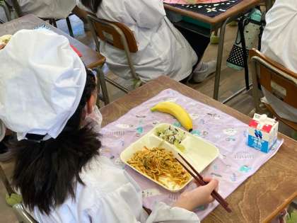 今日は、年に1度「バナナ1本」が、丸ごと給食に出る日です。美味しくいただきました。