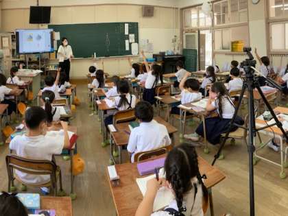 大阪市教育センターOJ T事業として、教育指導員より、授業の進め方など指導講評をオンラインでおこなっていただいています。
