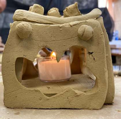 講師をお招きして、先生たちは、図工のスキルアップ研修に取り組んでいます。粘土づくりの技法を学びながら、いろんな造形に挑戦しています。