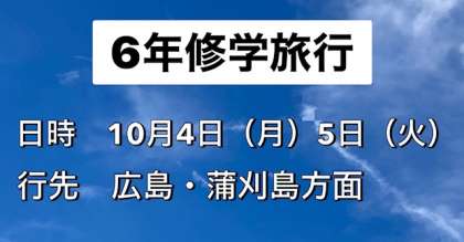➤コロナ感染対策をとり、出発予定です。保護者の皆様には実施するにあたり、ご理解とご協力をいただきありがとうございます。また、当日のバス出発場所は、平野スポーツセンター前となっております。