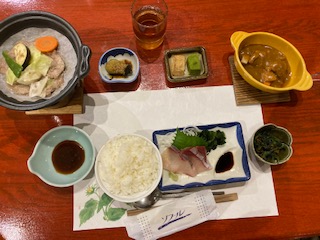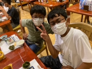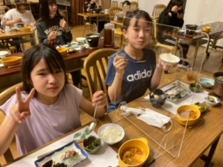 19:15 夕食。お風呂や買い物を済ませてからとなりました。おいしくいただいていました。
