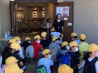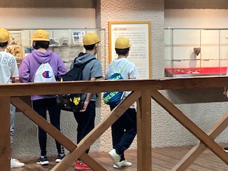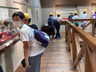 蒲刈町古代製塩遺跡復元展示館を見学しています。古代の知恵を学んでくれたでしょうか。