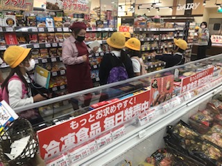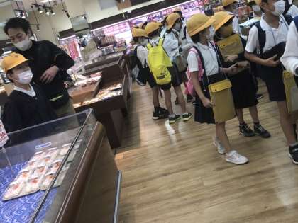 駒川商店街でお店の方に、いろいろと質問をさせていただいています。学校に戻ってから、まとめ学習をします。