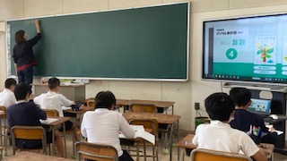 算数の授業を3分割して学習に取り組んでいます。今日のめあては「直角を探そう」です。