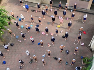 本日は、梅雨の晴れ間です。1限から5年生が、入水します。
