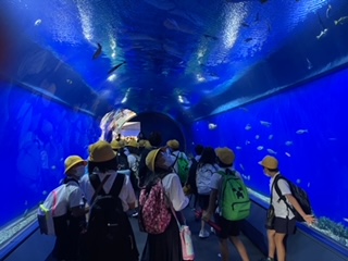 海遊館に着きました。これから、いろいろな魚を見たりふれたりしていきます。