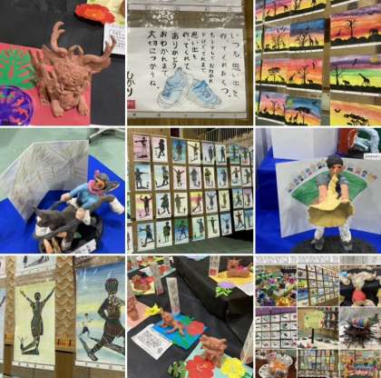 授業参観と併せて、作品展を開催しています。ご案内のお時間に、子どもたちの個性豊かな、世界にひとつの作品をご鑑賞ください。