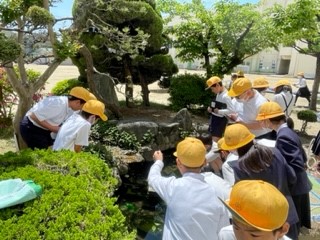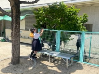 今日の4年生の理科の授業は、1人一台端末を使って、校庭の生き物を観察・記録していきました。