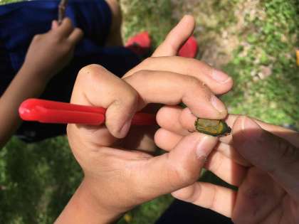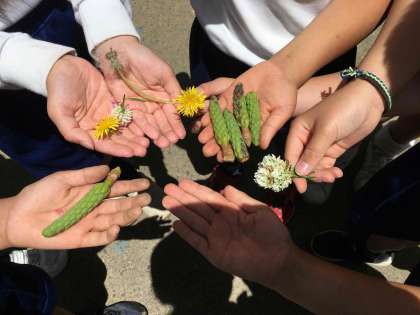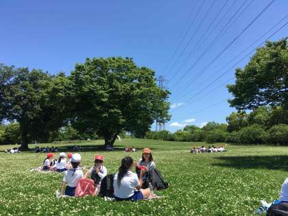 さわやかな天気のもと、ふかふかの芝生の上でお弁当とおやつを食べました。
