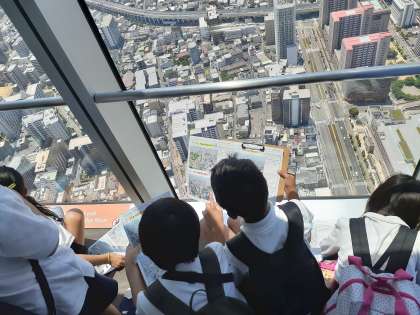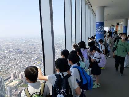 社会の『わたしたちの大阪市』の学習の一環として、あべのハルカスへ行きました。