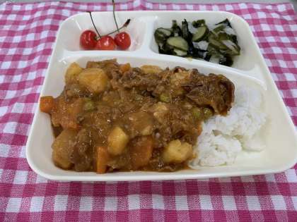 給食に、1年に一回の「さくらんぼ」が出ました。