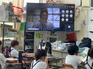 暑さ対策のため、本日の朝会はオンラインで実施しました。