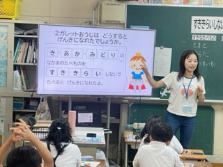 き(色)・あか(色)・みどり(色)のなかまの食べ物の勉強をしました。
