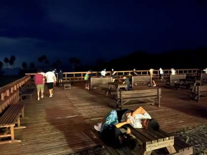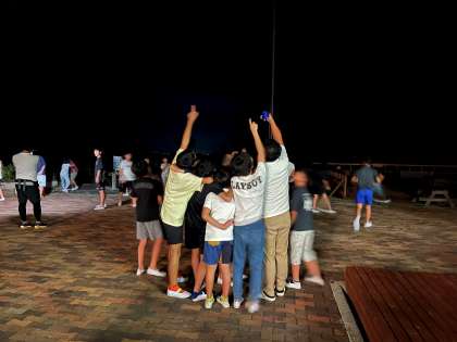 食後は天体観測をしました。くもり空でなかなか星は見えなかったのですが、大阪と違い明かりがない中で夜空を楽しみました。