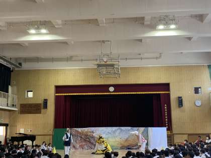 『トッキエ チェバン(ウサギの裁判)』という朝鮮に古くから伝わる民話劇も鑑賞しました。他に『ぺンイ』と『ノルティギ』の遊び体験もありました。4年ぶりに全学年が会しての開催で、子ども達の笑顔と惜しみない拍手が印象的でした。
