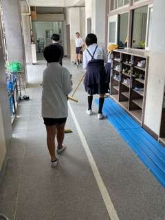 平野南小学校では4月の間1年生の教室や廊下、トイレの清掃を最高学年の6年生が行ってくれます。