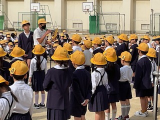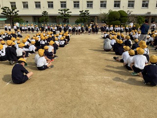 4月15日児童朝会後に、「1年生対面式」を実施しました。児童会の皆さんが司会進行を努めてくれました。今日から1年生も休み時間に運動場で遊びます。1年生が安全に遊べるよう、2〜6年生の上級生が見守ってくれると嬉しいです。