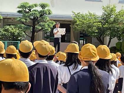 6月13日は本校の創立記念日です。校長先生からは創立のお話と「校章・校訓・校歌」についてお話がありました。