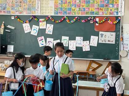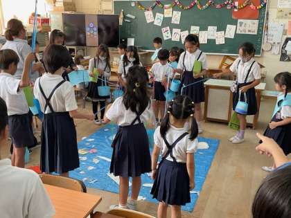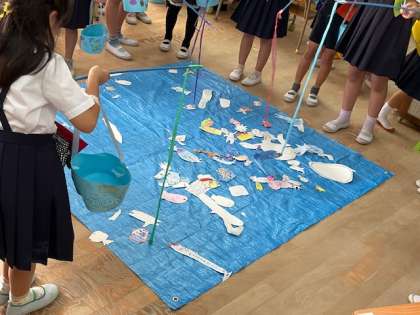 1年1組では「魚釣り」のお店が開かれていました。時間内に何匹釣ることができるかな?