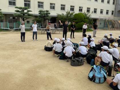 予定通り8:30より出校式を行いました。朝早くからご準備いただきありがとうございます。