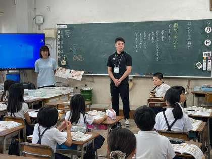 今年度2人目と3人目となる教育実習が本日より開始されました。大阪総合保育大学と常盤会学園大学から本校卒業生が来ています。約1ヶ月間の教育実習を1−2と4−1で行います。大学生とともに児童のみなさんもたくさんのことを学んでほしいと思います。