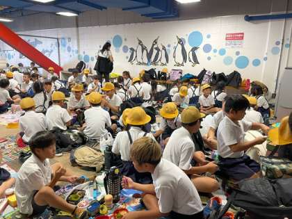 暑さのため海遊館の方で屋内の食事スペースを提供いただけました。