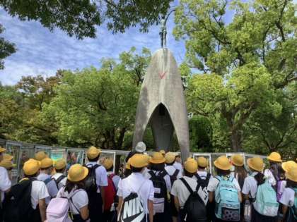 平和集会のため、原爆の子の像の前に移動しました。