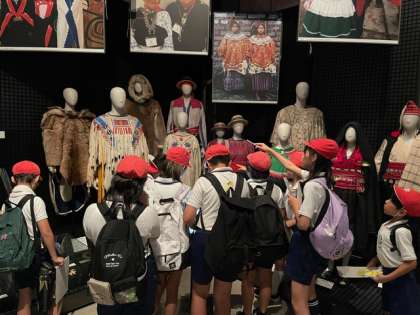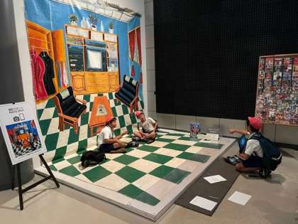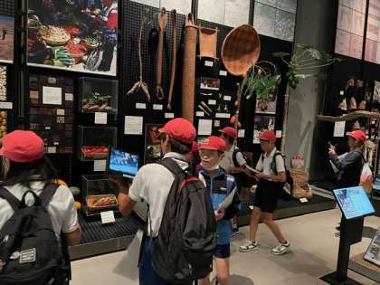メモを取ったりタブレット端末で記録しながら展示を鑑賞しています。