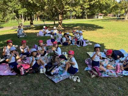 大芝生広場に来ました。待ちに待ったお弁当タイムです♪朝早くからお弁当の準備、ありがとうございました。