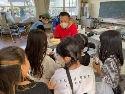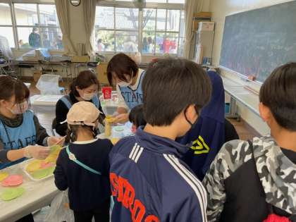 たこせんやミルクせんべいをみんな笑顔で頬張っていました♪
