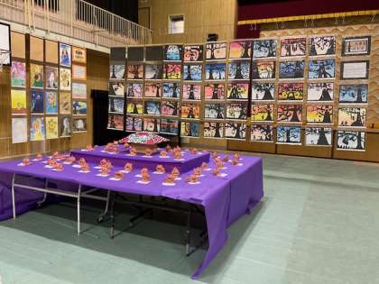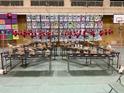 作品展 9:30から12:00 講堂にて 下足のままでご覧いただけます。