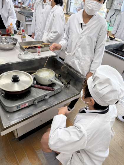本日、6年生で調理実習をしました。グループで協力して作りました♪