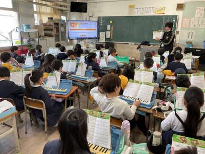 2年生では、音楽科で鍵盤ハーモニカの学習をしていました。曲は「アイアイ」です。