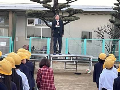 校長先生からは、年度末まで残り1ヶ月になったことを受け、各学年のこれまで1年間の振り返りの話がありました。残り1ヶ月ですが、大事にこれからの学校生活を送ってほしいと思います。