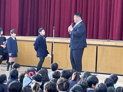 質問コーナーでは、学年ごとの質問について、丁寧にお答えいただき、何事にも勇気を持って一歩踏み出すことの大切さや楽しむことの大切さについて熱く語っていただきました。