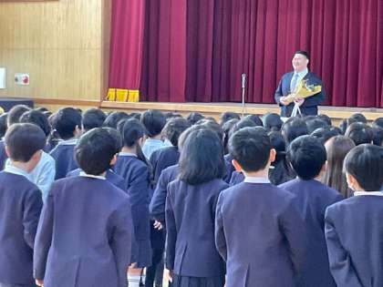式の最後には全校で校歌を歌い斉藤選手は笑顔で懐かしんでおられました。