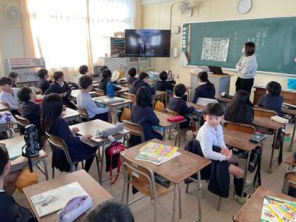4年生では、新しくリニューアルされた図書館で静かに読書活動をしていました。