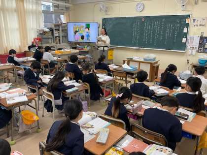 1年生では、道徳で「120てんのそうじ」という題材の学習をしていました。