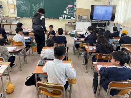 3年生では、算数科で「そろばん」の学習をしていました。先生の説明を真剣に聞いていました。