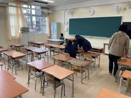 新6年生の皆さんには、会場の設営やトイレ掃除、1年生の教室整備をお手伝いしてもらいました。