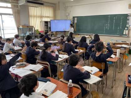5年生では、国語科の学習で「おにぎり石の伝説」について、登場人物の心情の変化について考えていました。
