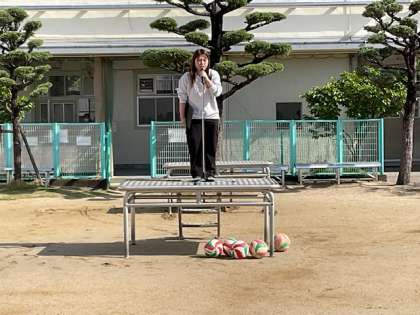 最後に今週の生活目標についてお話がありました。目標は「きまりを守ろう」です。けがの防止のためにも遊び方などのきまりをしっかり守りましょう。