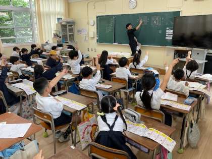 2年生では、国語科で新出漢字の学習をしていました。一つ一つ読みと書き順を確かめていました。