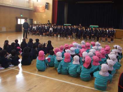平野南小学校では、4月に入学を控えている近隣の幼稚園・保育所の子どもたちを招待して交流会を開いています。1月22日(金)の2年生の交流の様子です。