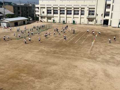 4年生では、体育科の学習でボールを遠くに投げるための練習をしていました。