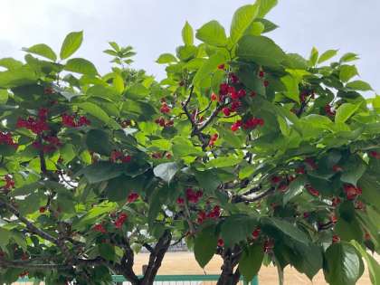 校庭の木々も花を咲かせたり実を実らせたりしています。